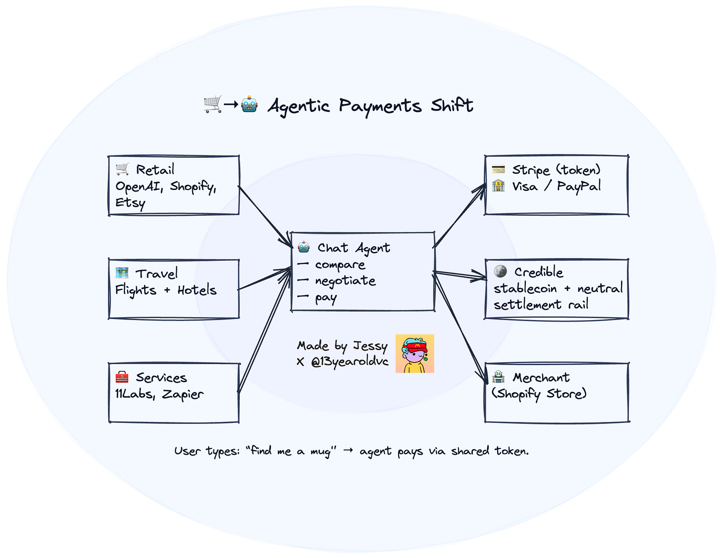 Why stablecoins & blockchains? Because the shape of these transactions looks nothing like what Visa or PayPal were built for. The agentic economy is full of small, conditional, composable, high-frequency payments - too fast, too granular, too global.