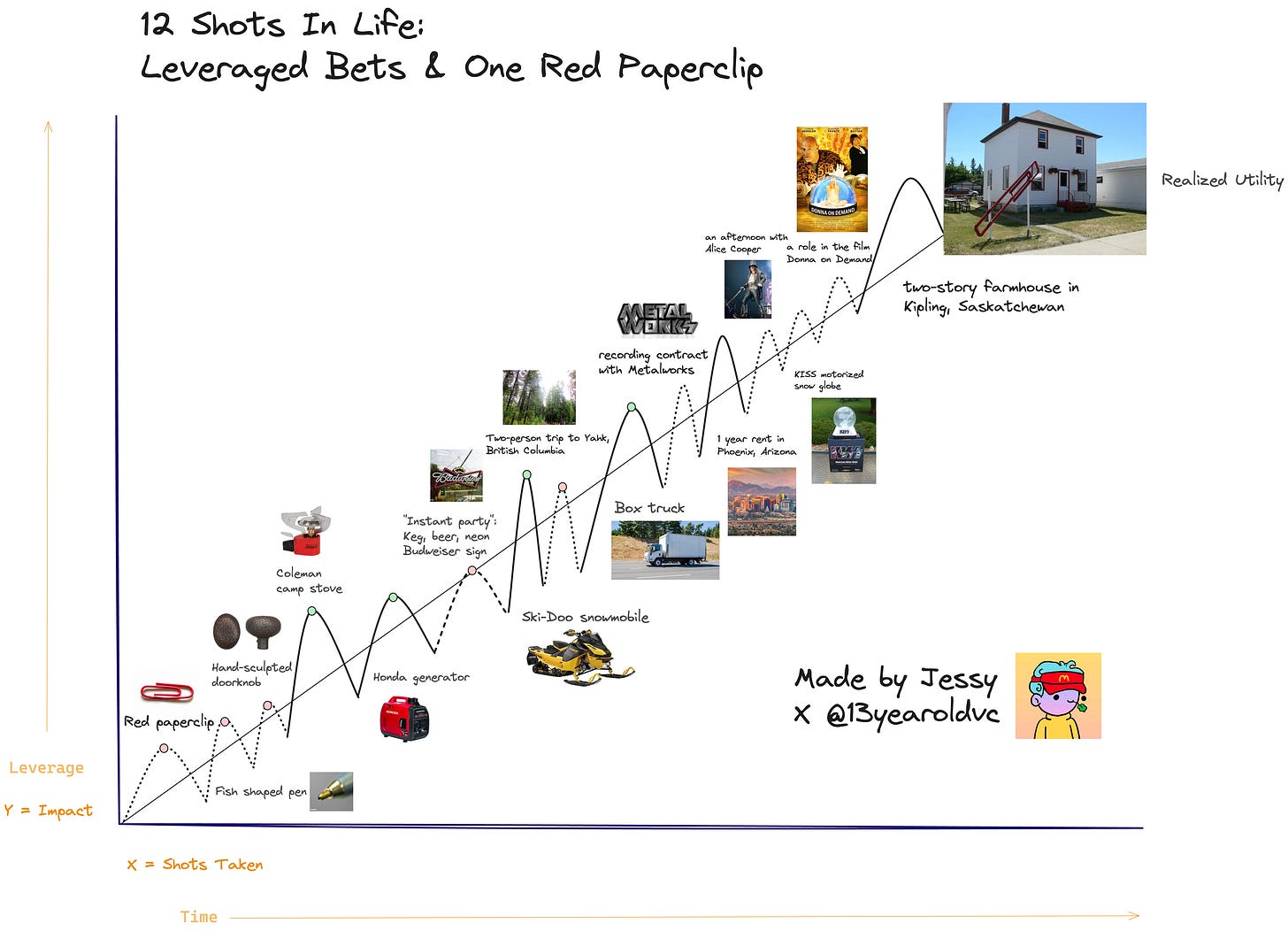 This is where the red paperclip principle comes in. One Canadian blogger traded from a red paperclip to a two-story house in 14 trades. The lessons here are: